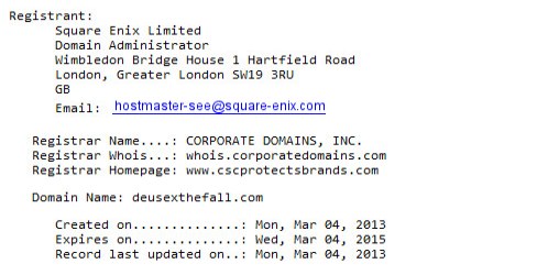 Как сообщает Superannuation, 4 марта 2013 были зарегистрированы домены для чего-то под названием Deus Ex: The Fall: