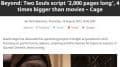 Сценарий Beyond: Two Souls также занимал около 2000 страниц, что отметил представитель Sony, публикуя фотографию стопки бумаги с материалом игры.