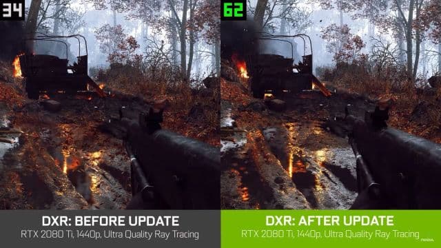 Кроме того, обладателям РС-версии и видеокарт Nvidia RTX обещали прирост производительности вплоть до 50% при включённой технологии трассировки лучей в реальном времени. По словам авторов, в некоторых сценах после обновления видеокарта RTX 2080 Ti выдаёт 62 к/c в разрешении 1440р с максимальными настройками трассировки лучей, хотя ранее в этих же сценах игра работала при 34к/c.