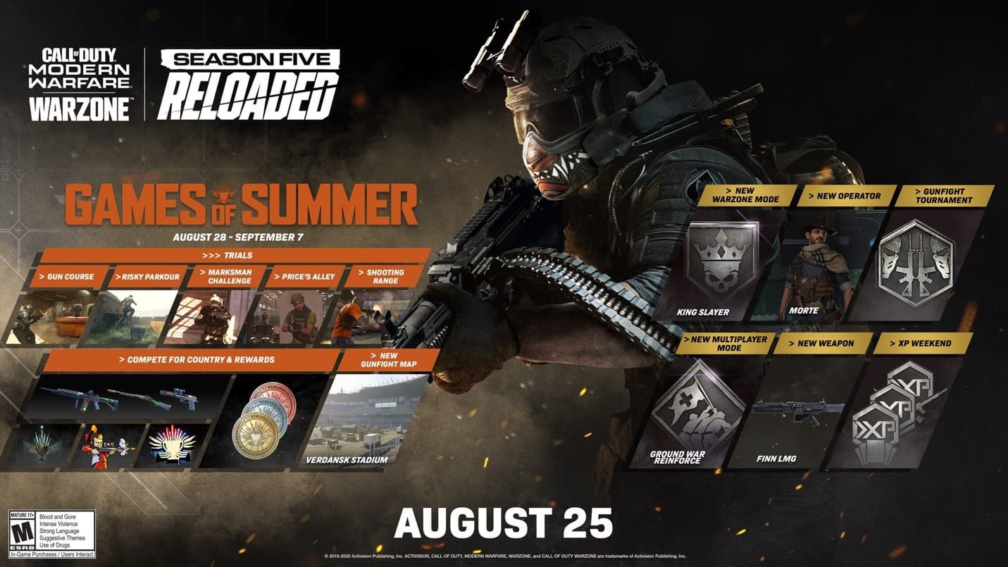 Сегодня Call of Duty: Modern Warfare и королевская битва Warzone получили масштабное межсезонное обновление, объявившее старт события Games of Summer, которое продлится до 7 сентября.