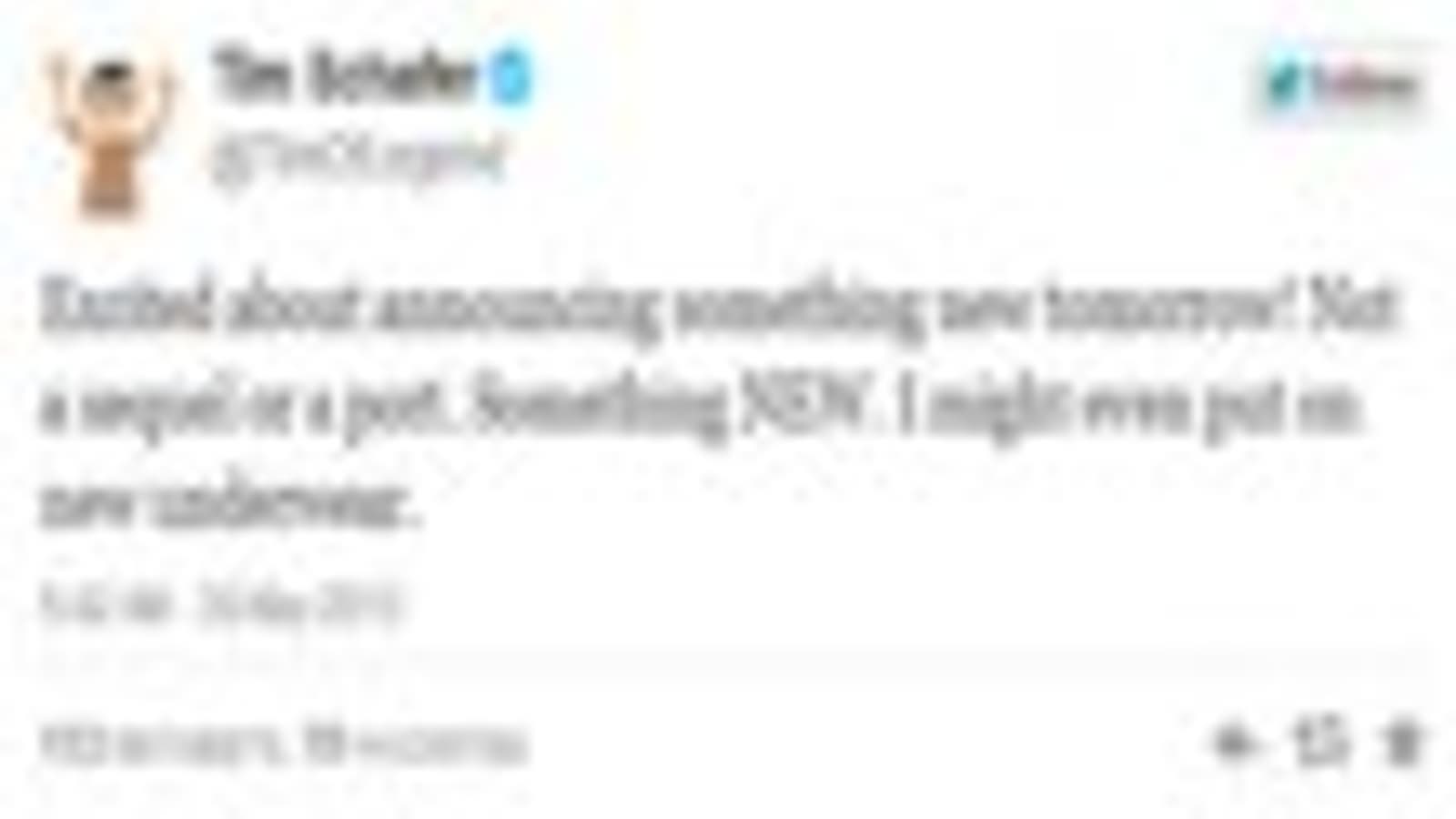Он уточнил, что речь идет не о каком-то порте или продолжении существующей серии. Это совершенно новая игра, а Тим настолько воодушевлен, что планирует по этому поводу одеть новое нижнее белье.