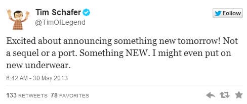Основатель и руководитель студии Double Fine Тим Шафер (Tim Schafer) оставил на своей twitter-страничке сообщение о том, что завтра состоится анонс новой игры от этого коллектива.