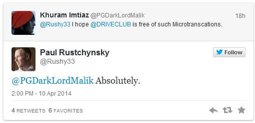 Главный дизайнер DriveClub Пол Рустчински (Paul Rustchynsky) подтвердил, что новая гоночная игра не пойдет по стопам Gran Turismo 6 и не предложит игрокам микротранзакции в какой-либо форме.