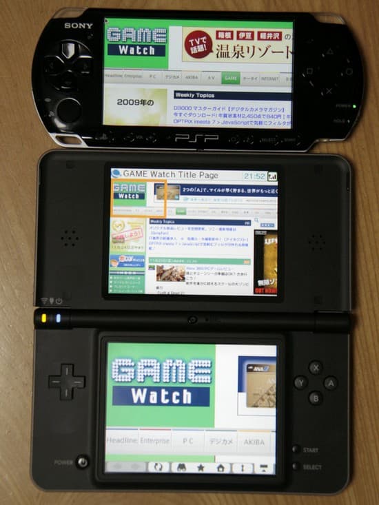 А на фотографиях к данной заметке вы можете увидеть, насколько большой является DSi LL по сравнению с PSP Go и даже PSP-3000.