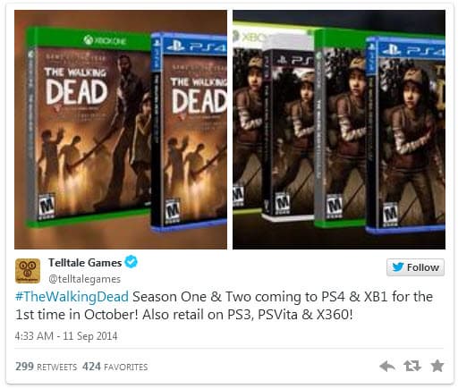 Как стало известно, коробочные версии The Walking Dead: Season One и The Walking Dead: Season Two будут выпущены на этих консолях, а также на PS3, Vita и Xbox 360 в октябре.