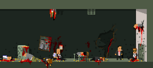 Разработчики сохранили крайне простой визуальный стиль, изменился жанр. Not a Hero - это двухмерный шутер с укрытиями и запредельной степенью жестокости, если судить по единственному изображению, которое есть в Сети на данный момент.