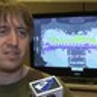 Его рассказ сопровождается демонстрацией различных игровых моментов из PixelJunk Shooter 2.