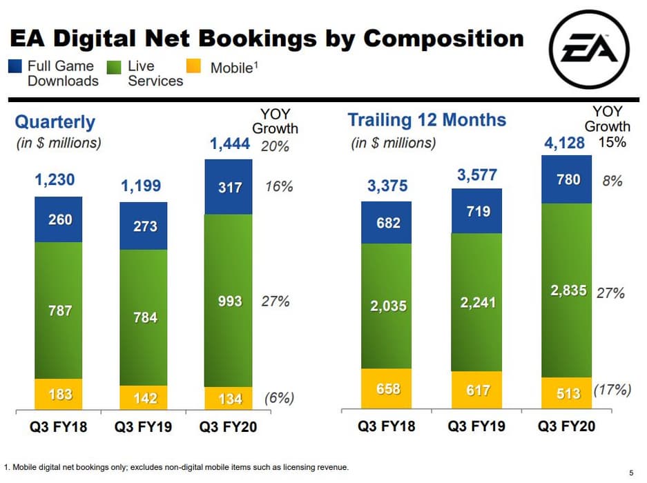 Деньги в основном генерировались режимами Ultimate Team в спортивных играх FIFA 20, Madden NFL 20 и NHL 20. Стоит добавить, что в период с 1 октября по 31 декабря 2019 года общая выручка компании составила $1,59 млрд. Таким образом, микроплатежи принесли более половины дохода EA.