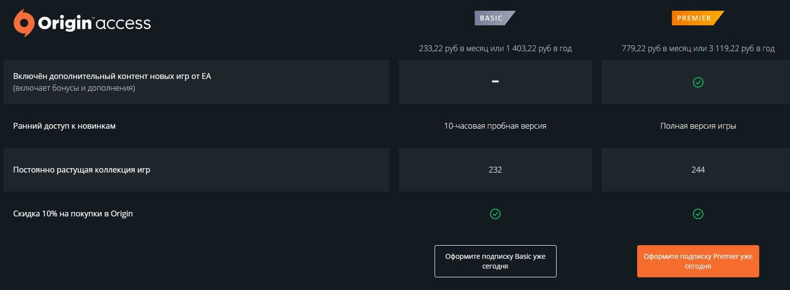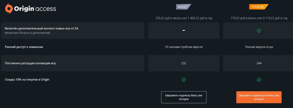 Новая цена Origin Access Basic – 233,22 рубля в месяц и 1403,22 рубля в год