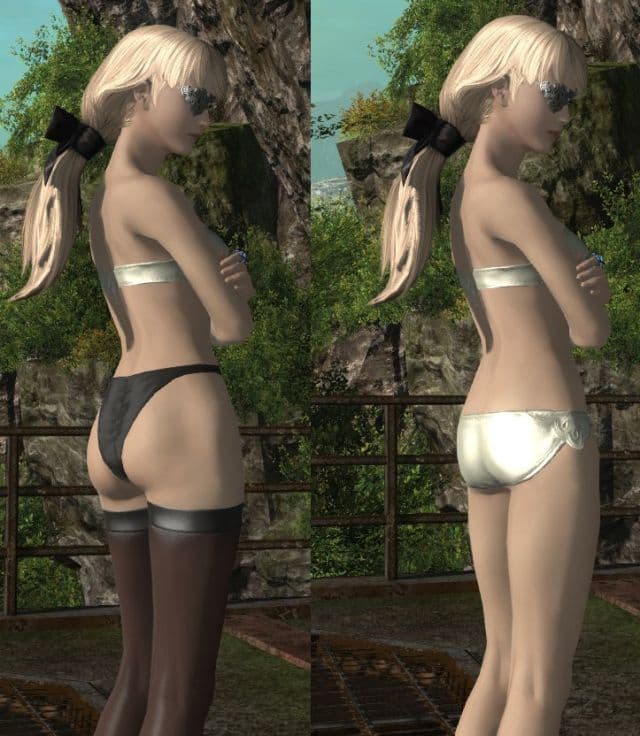 Вскоре пользователи заметили занятный эффект, который оказывает на персонажей Final Fantasy XIV костюм 2В. Если надеть только нижнюю часть костюма, то можно увидеть, что задница персонажа стала более выпуклой и привлекательной. Ниже представлено изображение с наглядным доказательством «эффекта 2В».