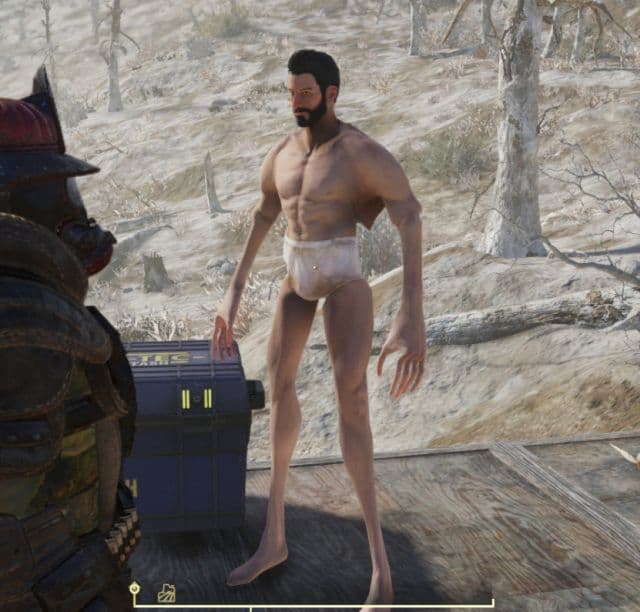 Компания Bethesda продолжает оправдывать свои слова о том, что пользователям Fallout 76 стоит приготовиться к «эффектным проблемам». В частности, некоторые игроки столкнулись с тем, что при попытке использовать силовую броню, элементы брони или при попытке положить элементы брони в инвентарь руки и ноги персонажа деформируются. При этом герой отказывается двигаться и стоит, как вкопанный, в одних трусах.