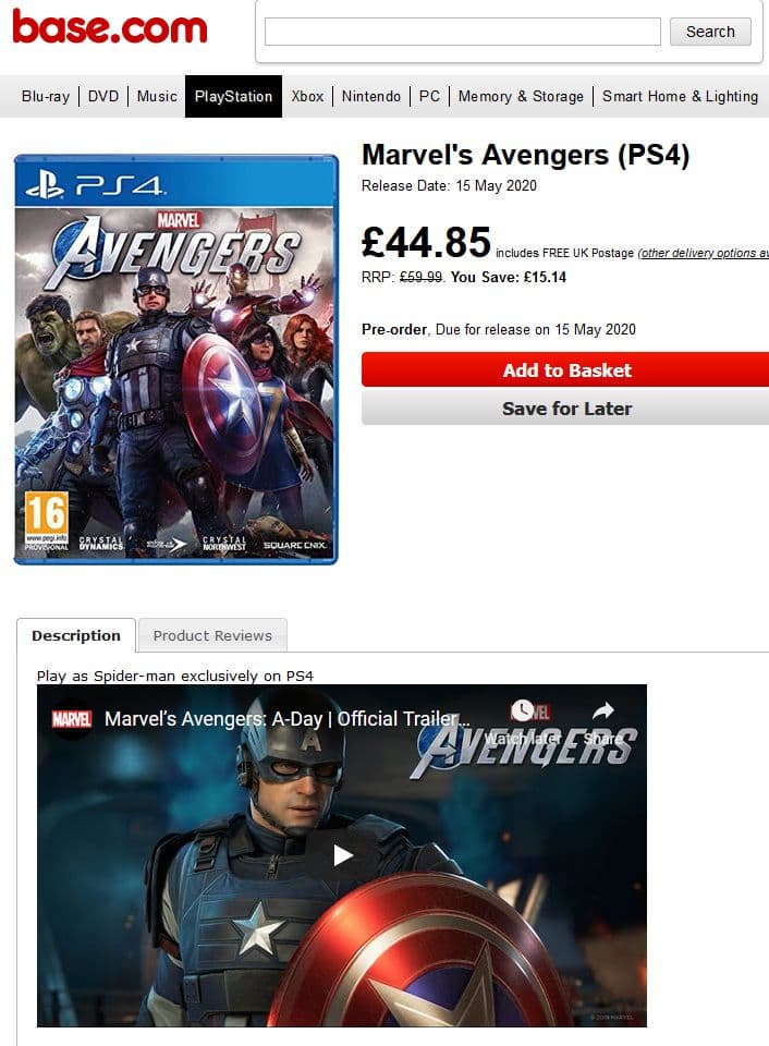 На сайте магазина Base.com в описании игры Marvel's Avengers появилось упоминание о том, что Человек-паук будет доступен только в PS4-версии.