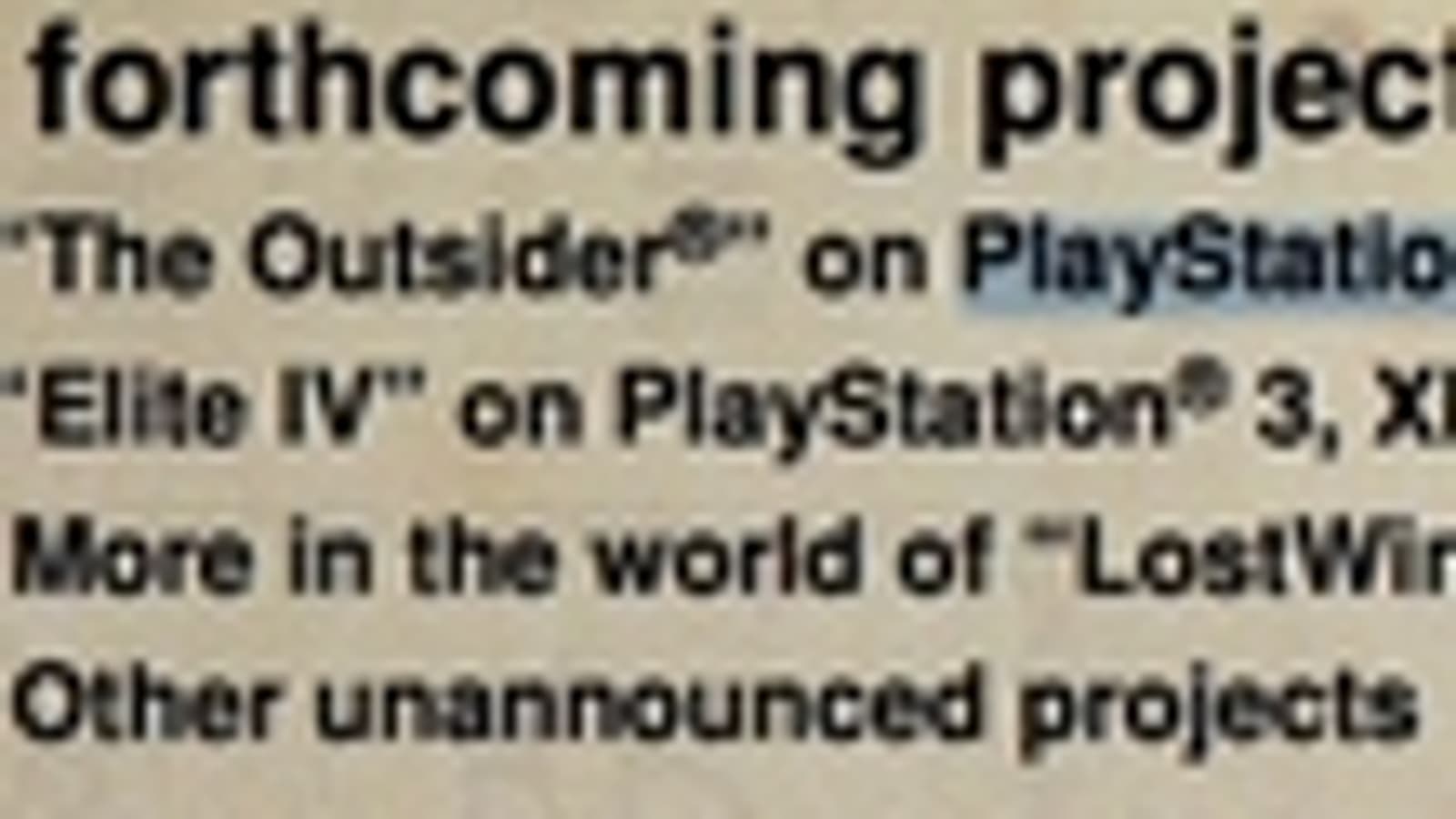 Источником послужил сам Дэвид Брабен, который выступая на одной из пресс-конференций, показал несколько слайдов, содержащих упоминание проектов, создаваемых силами его студии.
