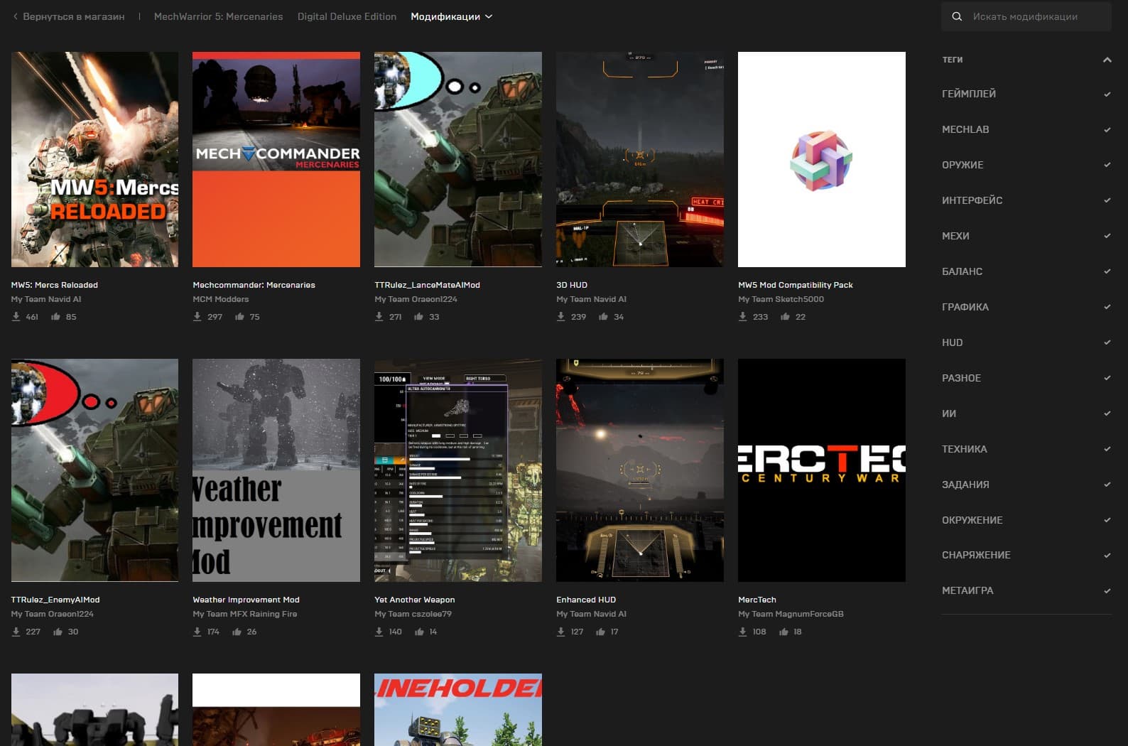 На странице игры появилась вкладка "Модификации" с тринадцатью элементами. Тем не менее Epic Games уже разработала инструменты для поиска модов и их фильтрации по категориям.