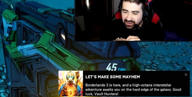 В процессе прохождения РС-версии Borderlands 3 на экране появилась реклама Borderlands 3 с предложением купить игру. По словам Джо, ему пришлось свернуть игру, чтобы закрыть рекламу.