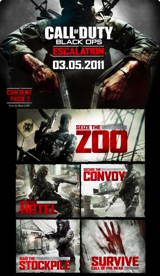 Напомним, еще осенью прошлого года было объявлено о том, что все дополнения и наборы карт, которые выйдут для Call of Duty: Black Ops до конца 2012 году, будут изначально появляться в Xbox Live. На раскраске присутствует информация о том, что Escalation Pack также изначально появится в Xbox Live.