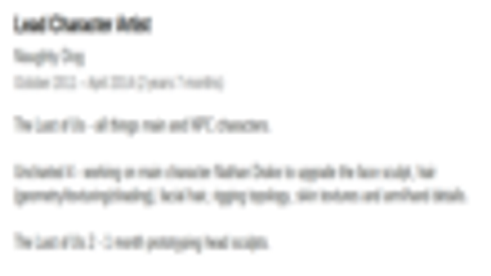 Еще одно подтверждение факта разработки The Last of Us 2 было опубликовано на LinkedIn-страничке Майкла Ноуленда (Michael Knowland), бывшего главного художника по персонажам The Last of Us, который покинул компанию в апреле прошлого года. Он указал, что занимался прототипами голов игровых персонажей для The Last of Us 2.
