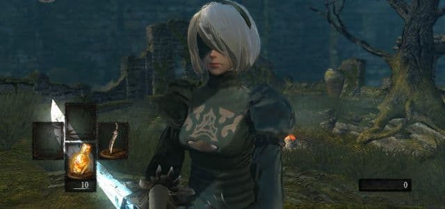Если вы хотите играть за 2B, то вам необходимо облачиться в набор брони Wanderer или Thief Black, который доступен на старте игры классу «вор». Причём в 2B может превратиться как герой Dark Souls женского пола, так и мужского.