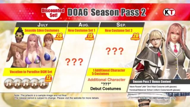 В августе в игре появится 15 новых, пока не анонсированных костюмов. В сентябре в Dead or Alive 6 добавят нового персонажа с пятью костюмами и ещё 26 костюмов для остальных героев.