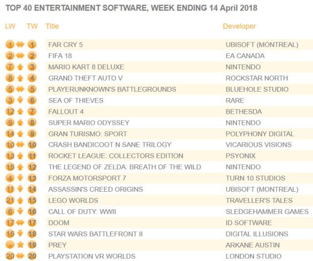 Появились данные о продажах физических версий игр на территории Британии за прошлую неделю. На первом месте остался боевик в открытом мире Far Cry 5, продажи которого снизились на 45% по сравнению с предыдущей неделей.