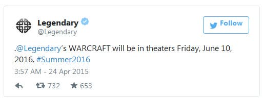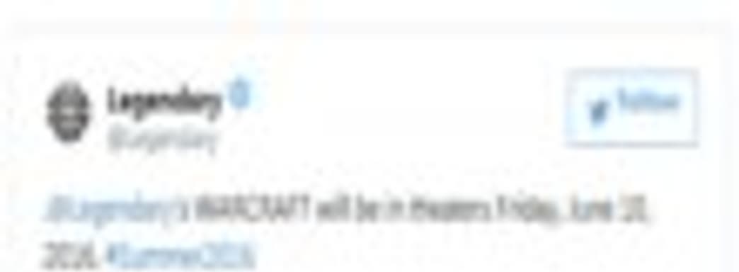 Тогда сообщалось, что начало проката ленты в кинотеатрах перенесли с конца 2015 на март 2016. Вчера компания Legendary Pictures официально сообщила о том, что фильм Warcraft задержится еще на пару месяцев, но теперь у него есть точная дата начала проката - 10 июня 2016.