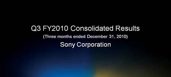 Компания Sony также отчиталась о результатах своей деятельности в третьем квартале текущего финансового года, который закончился 31 декабря 2010.