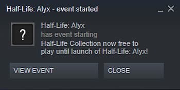 Некоторые пользователи Steam на днях получили уведомление о том, что некая Half-Life Collection становится условно-бесплатной до релиза Half-Life: Alyx. Уведомление быстро исчезло, но бдительные пользователи успели сделать скриншот.