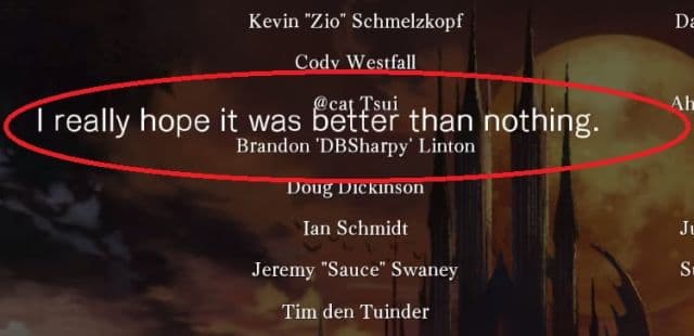Также в титрах есть фраза: «Я очень надеюсь, что это лучше, чем ничего».