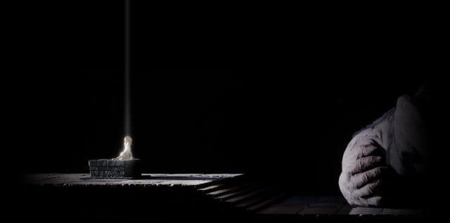 Изображение, на котором девочка, освещённая лучом яркого света, сидит на каменном алтаре, а рядом с ней виден массивный, пухлый кулак огромного существа, появилось на сайте его студии genDESIGN.