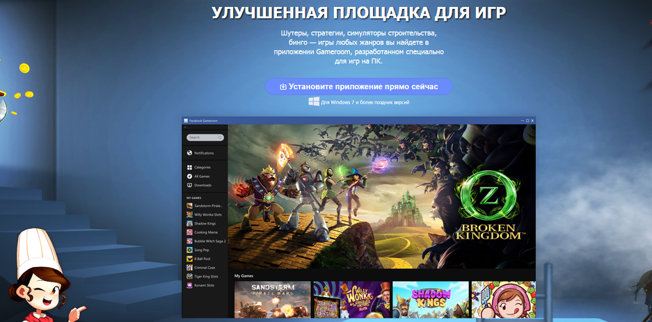 На конференции разработчиков Unity, проходящей в Лос-Анджелесе, компания Facebook анонсировала новую игровую платформу Gameroom. Обладатели Windows 7 и выше могут скачать клиент уже сейчас.