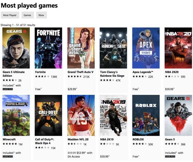 С лета 2018 года самой популярной игрой в Xbox Live постоянно оставалась Fortnite. Стоит отметить, что в Fortnite в сервисе не могла подвинуть ни одна из новинок, которая выходила в течение указанного периода времени: Red Dead Redemption 2, Call of Duty: Black Ops 4, Forza Horizon 4, Battlefield 5 и Apex Legends. До выхода Gears 5.