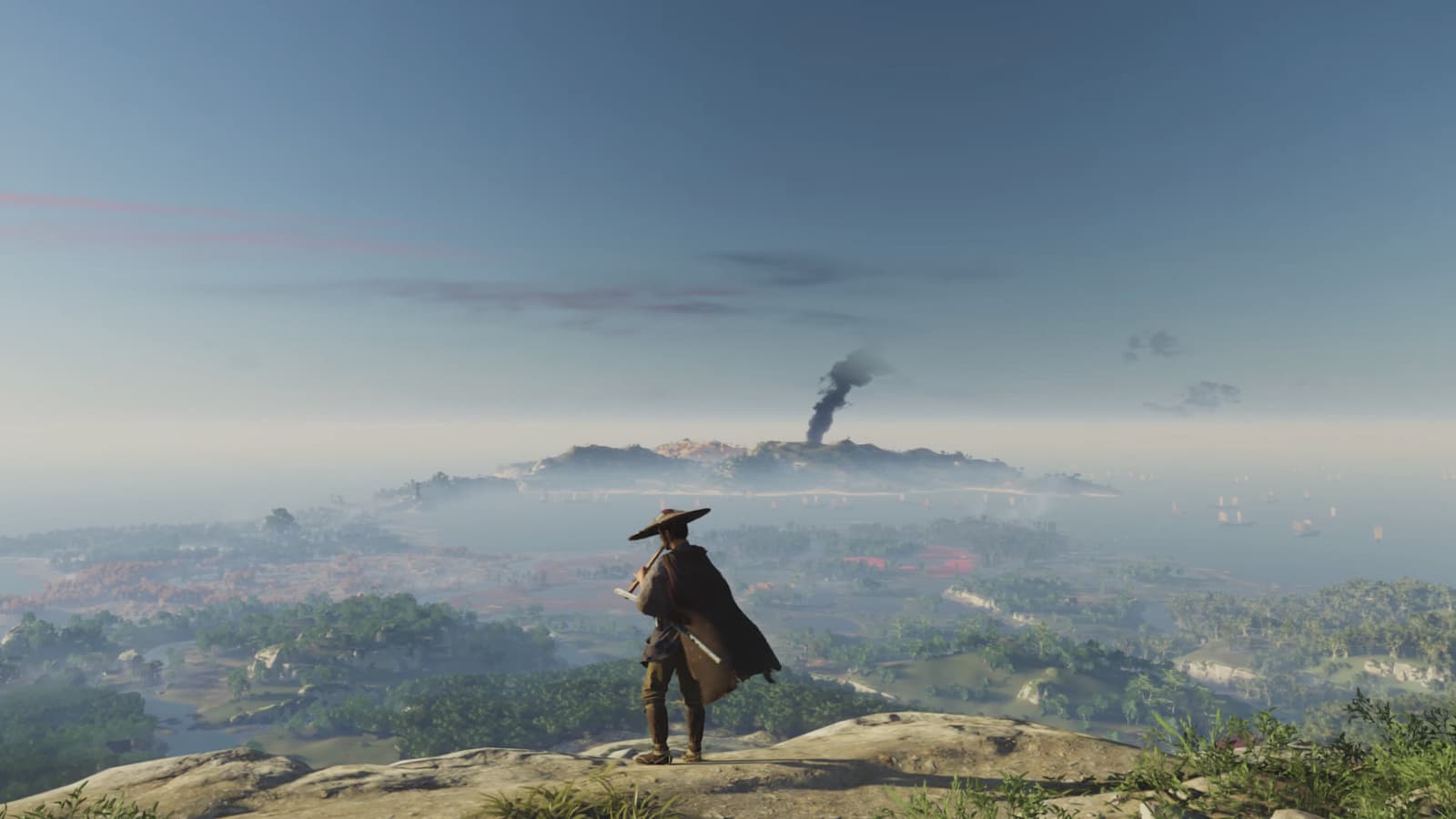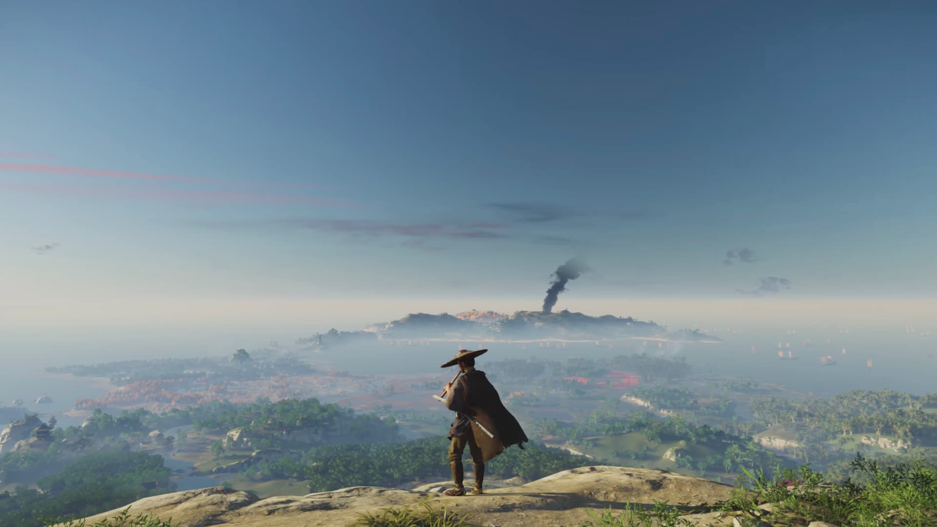 «Карта, которую мы показали на State of Play, была ОЧЕНЬ увеличена. Это была лишь небольшая часть стартовой локации, фактическая карта огромна. Остров Цусима включает биомы, которые можно найти в Японии, от снежных гор до бамбуковых лесов, водопадов и холмистых местностей – всё это есть. Мы хотим заинтриговать игрока и показать много вещей. Мы не желали делать большую и пустую карту. Поэтому она полна людей, объектов и историй».