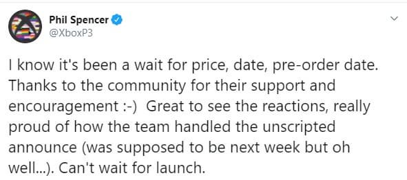Глава Xbox Фил Спенсер признался в твиттере, что в планы корпорации не входило анонсировать подробности, связанные с новым поколением на текущей неделе. Официально это должно было случиться на следующей, но «ну да ладно». Топ-менеджер с нетерпением ждёт момент запуска.