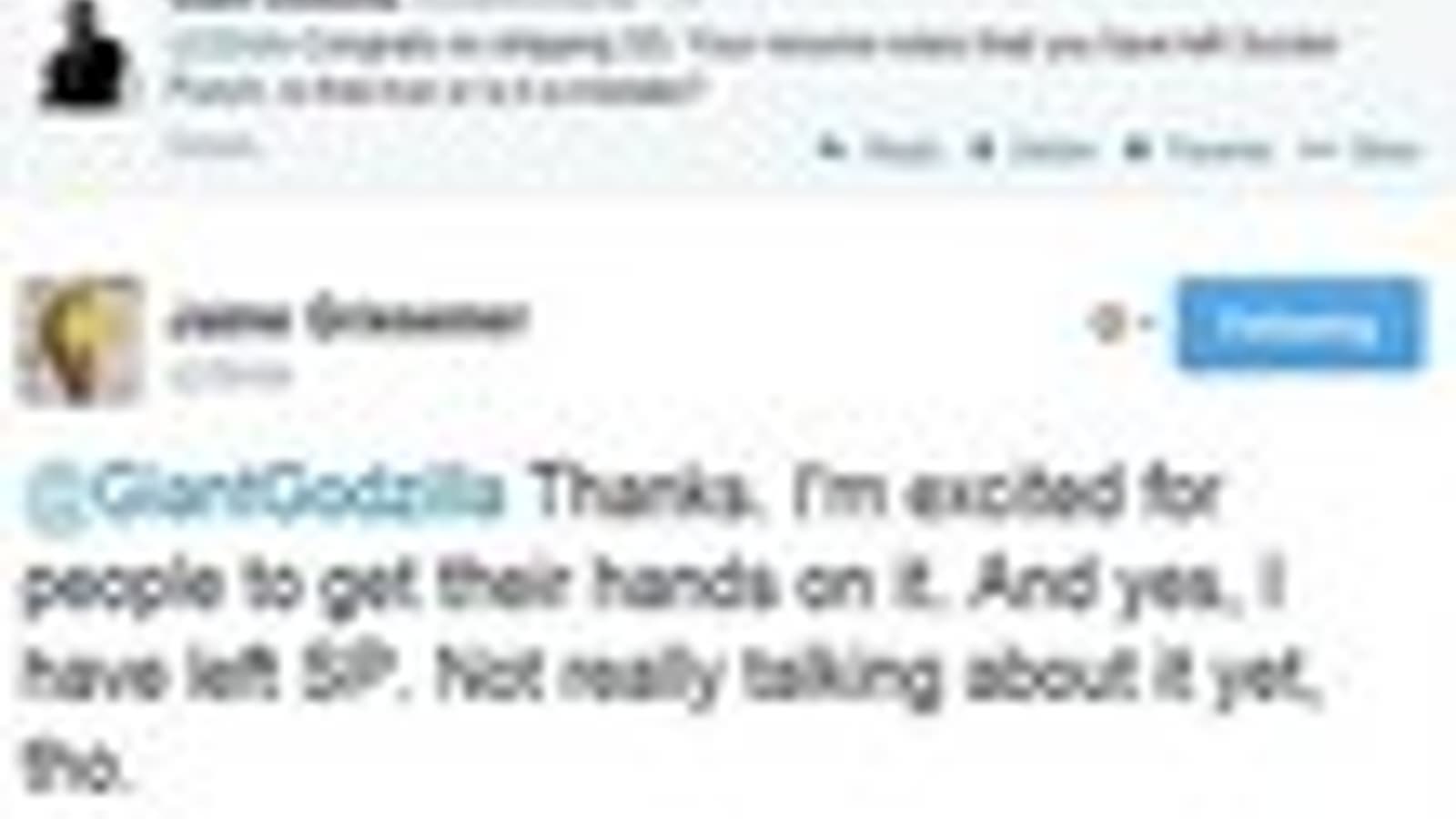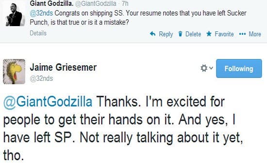 Главный дизайнер приключенческого экшена inFamous: Second Son Джейми Грайсмер (Jaime Griesemer) подтвердил, что он больше не является сотрудником студии Sucker Punch, но не стал вдаваться в подробности.