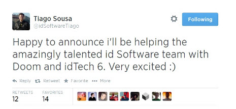 Тиаго Соуса (Tiago Sousa) присоединился к id Software, где он будет работать над id Tech 6 и новым Doom.