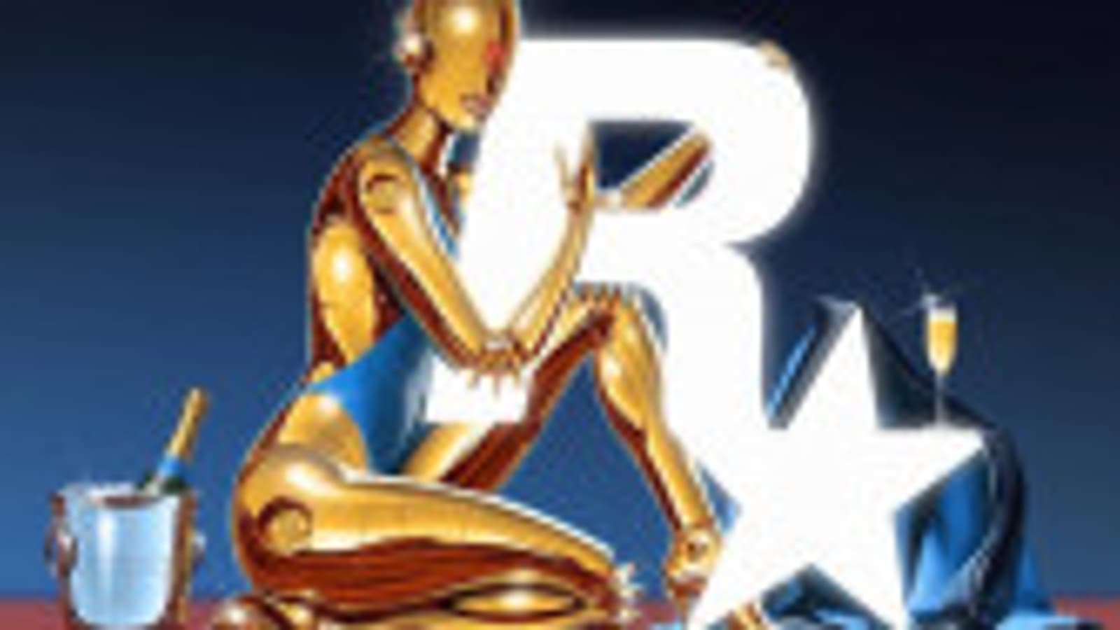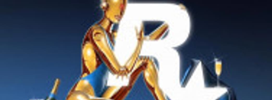 Первый арт выполнен в ретрофутуристическом стиле. Мы видим женщину-андроида, держащую логотип студии. Рядом с ней находится бутылка шампанского с надписью «1998». Это год основания Rockstar. Можно предположить, что изображение связано с днем рождения компании, но студию создали в декабре.