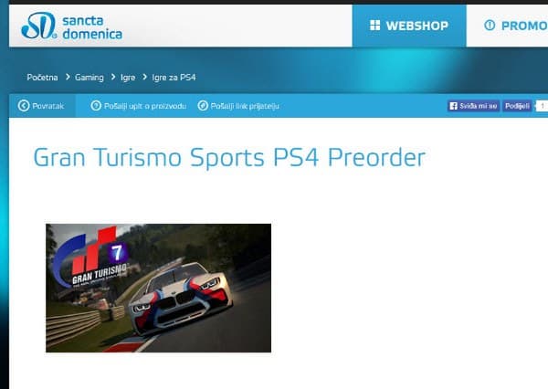 Хорватский онлайновый магазин Sancta Domenica открыл на своем сайте страничку для желающих оформить предварительный заказ на Gran Turismo Sports, однако через некоторое время страничку удалили.