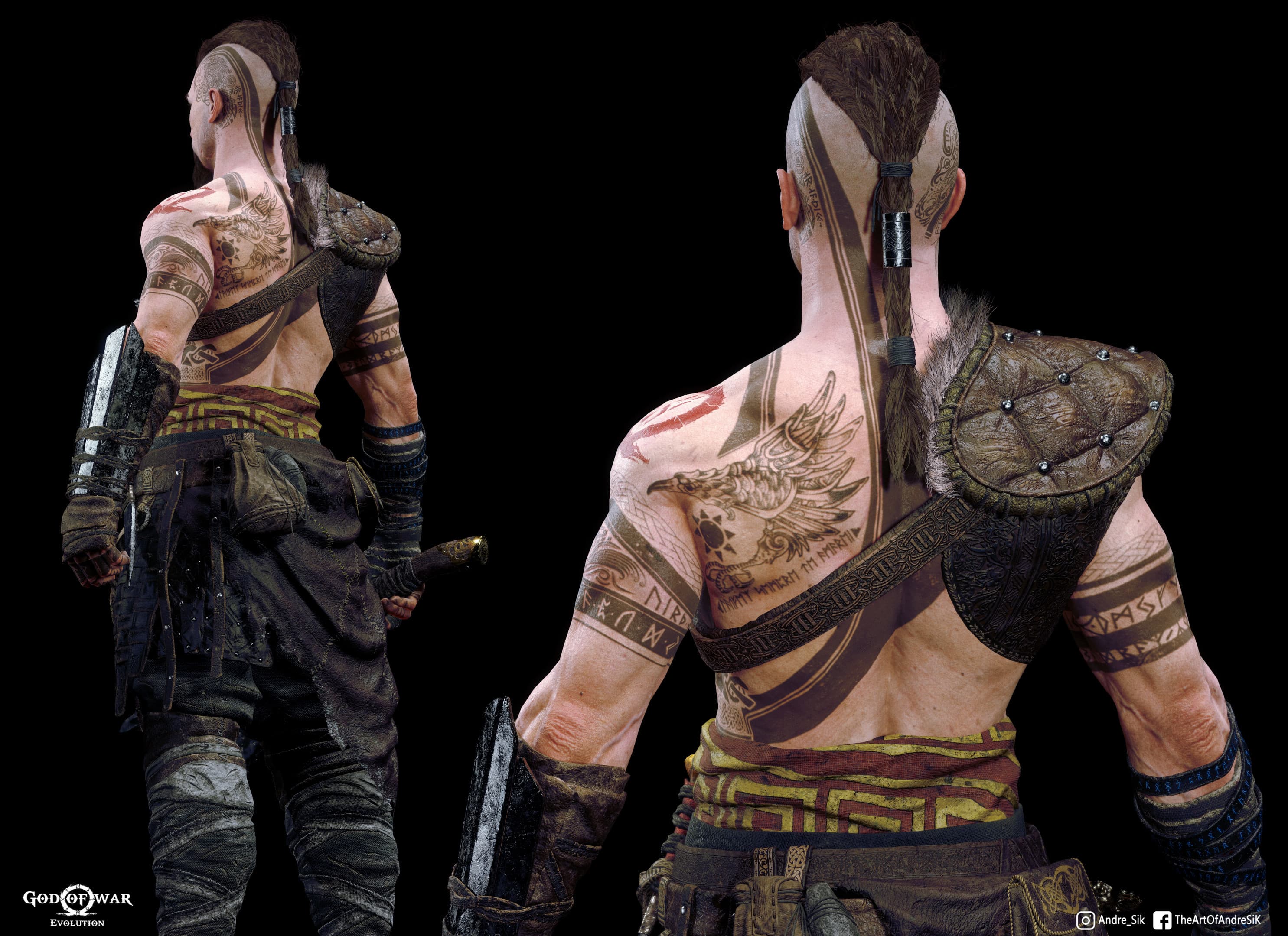 Художник, специализирующийся на проработке трёхмерных моделей, из Бразилии Андрей Сик решил представить, как может выглядеть взрослый Атрей – сын Кратоса из God of War (2018). Художник постарался совместить в одежде Атрея элементы одежды Кратоса (дань уважения отцу) и стилистику скандинавских мифов (дань уважения матери). Художник изобразил Атрея с топором и с луком и стрелами.