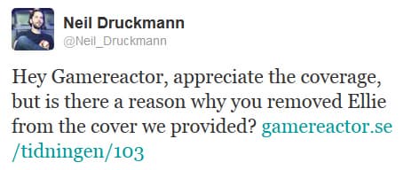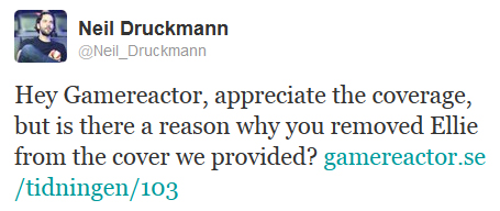 Ладно, с обложкой игры, которая может как-то повлиять на продажи, и позицией издателей все вроде бы ясно. Но чем руководствовалась редакция игрового журнала Gamereactor Sweden, полностью убрав Элли с концепт-арта, который предоставили им Naughty Dog, нам решительно непонятно.