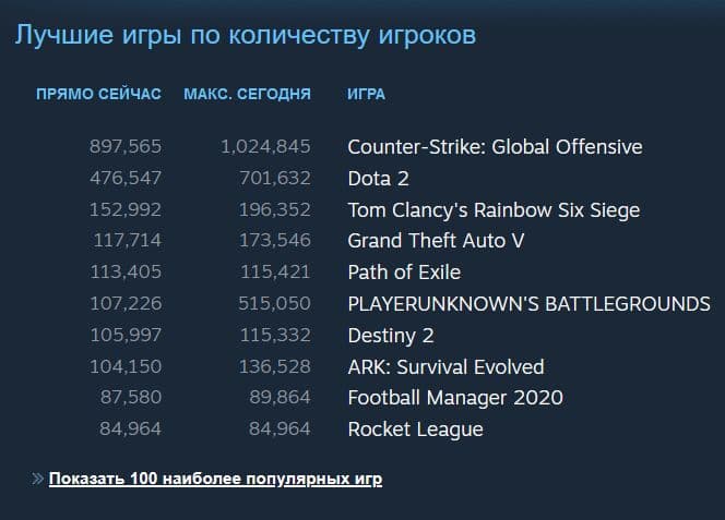 Популярные игры в Steam тоже переживают приток аудитории. В Counter-Strike: Global Offensive в течение последних 24 часов в определённый момент играло больше миллиона человек, в Dota 2 – более 700 тысяч, в PlayerUnknow’s Battlegrouds – более полумиллиона человек.