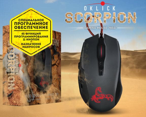 Ассортимент игровых мышей Oklick пополнился концептуально новой мышью Oklick 785G Scorpion, которую отличают 11 кнопок управления, 45 функций программирования и возможность назначения макросов.