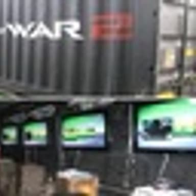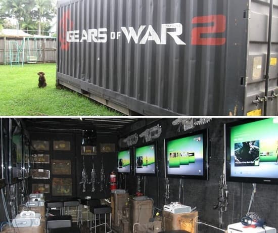 Это грузовой контейнер, в котором установлены 8 консолей Xbox 360, столько же 42-дюймовых LCD-панелей, система кондиционирования воздуха. Внутри все украшено военным декором, моделями оружия из вселенной Gears of War, снаружи - соответствующим логотипом.