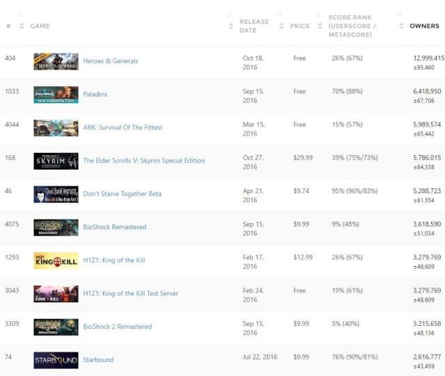 Год почти закончен и настало время с помощью сервиса Steamspy узнать, какие игры 2016 года выпуска пользовались особой популярностью у покупателей в Steam. Не будем считать условно-бесплатные, ремастеры старых игр и проекты, которые находятся в раннем доступе, хотя они тоже присутствуют на скриншотах: