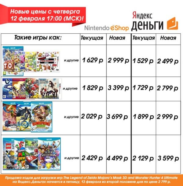 Ниже представлен таблица со старыми и новыми ценами. Эти изменения коснулись всех игр Nintendo и только избранных игр других издателей.