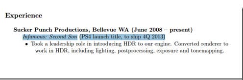 В резюме программиста Sucker Punch была опубликована информация о том, что приключенческий экшен inFAMOUS: Second Son является одним из стартовых проектов консоли PlayStation 4.