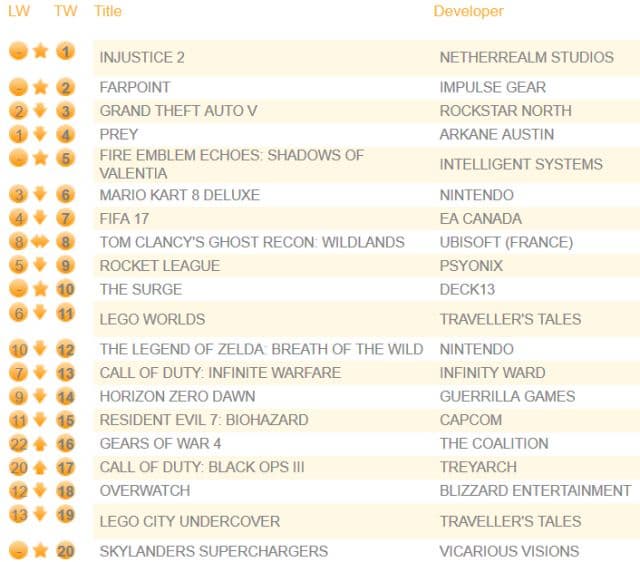 На первой строчке ожидаемо обосновался файтинг Injustice 2. Это первый файтинг со времён Mortal Kombat X 2015 года выпуска, которому удалось занять первое место в списке самых продаваемых игр на территории Соединённого королевства. Как известно, оба проекта разрабатывала студия NetherRealm и издавала компания Warner Bros.