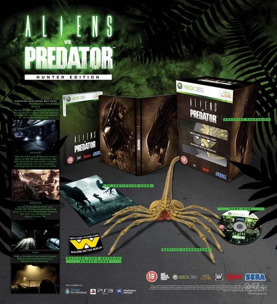 В состав Aliens Vs Predator: Hunter Edition войдут также копия игры, художественный альбом, сувенирный коврик для мыши, нашивка Weyland Yutani, а также открытка с трехмерной картинкой.