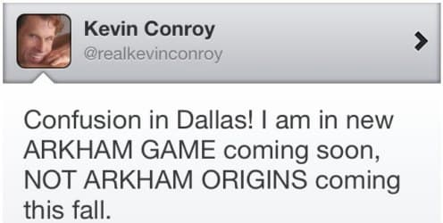 Однако затем сам актер оставил на своей twitter-страничке следующее сообщение: «В Далласе произошло недоразумение. Да, я буду в новой части Arkham, но речь идет не о Batman: Arkham Origins, которая поступит в продажу этой осенью».