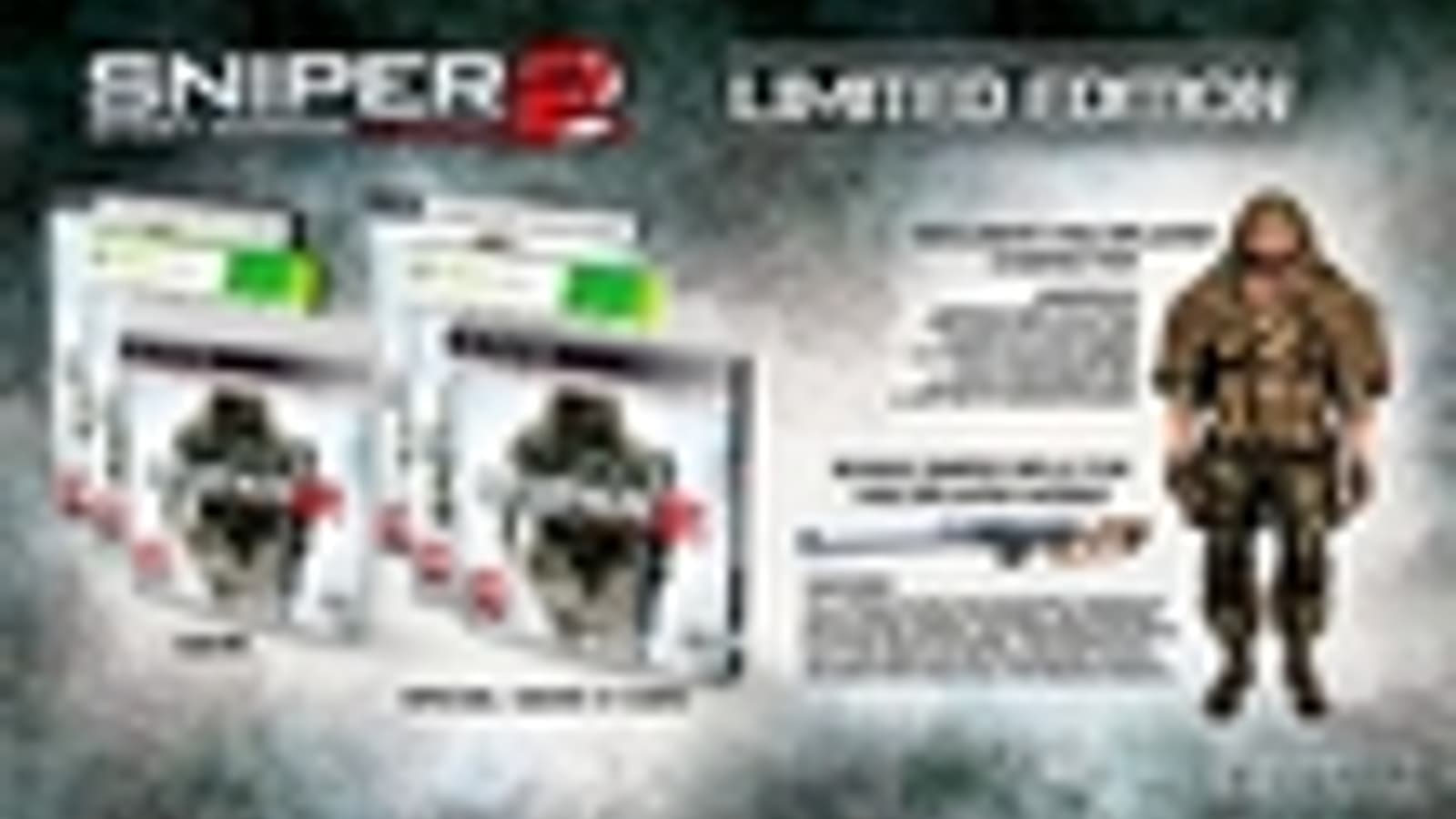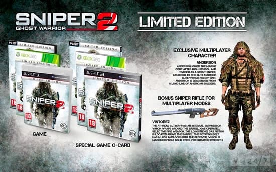 Sniper: Ghost Warrior 2 Limited Edition будет стоить на 10 фунтов стерлингов дешевле, его покупатели получат копию игры в картонном рукаве, винтовку Vintorez и возможность использовать Андресона (Anderson), главного героя игры, в мультиплеерной составляющей.