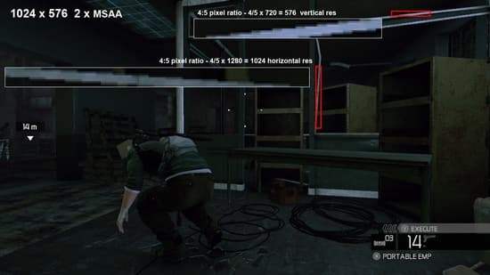 Скриншот, взятый из опубликованной вчера демо-версии игры, был изучен пользователем под ником MazingerDUDE, который занимается аналогичной работой в Digital Foundry. Как видите, консольная версия игры идет в разрешении 1024Х576 с двукратным сглаживанием MSAA.